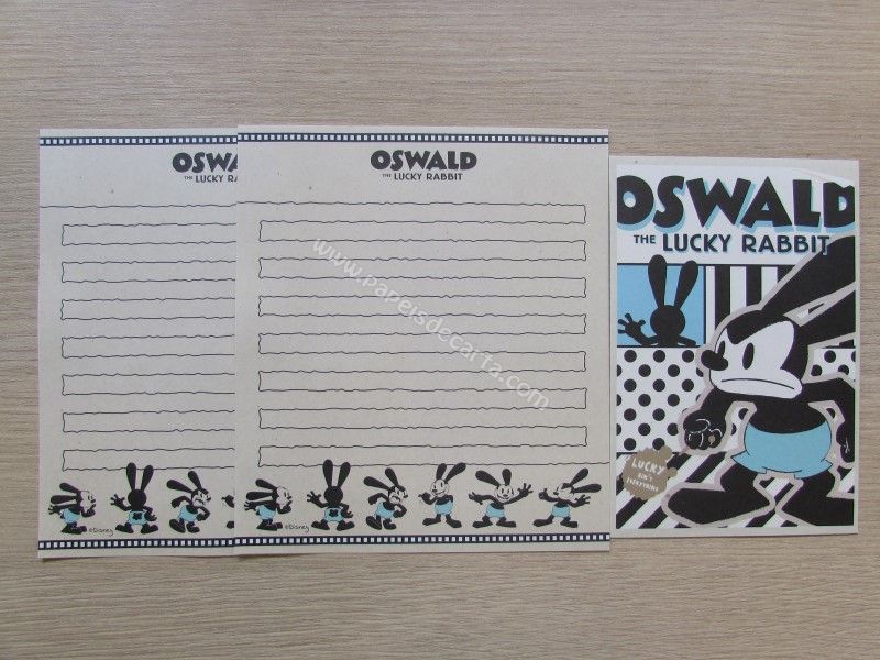 Conjunto importado, de papel de carta do Oswald (The Lucky Rabbit), com 2 folhas iguais e 1 envelope, da Disney.