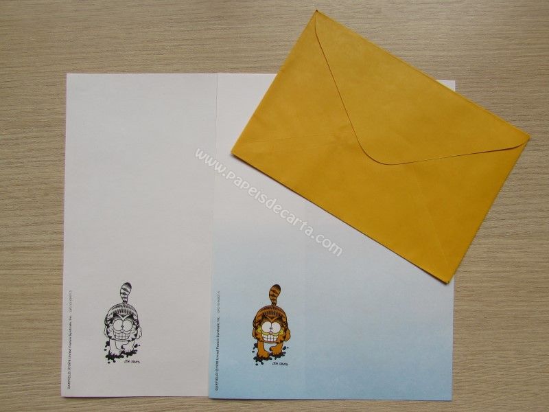 Papel de carta antigo, tamanho médio, com 2 folhas e 1 envelopeda coleção Garfield.