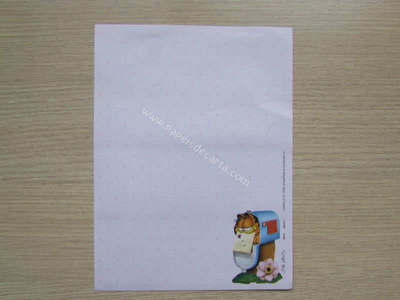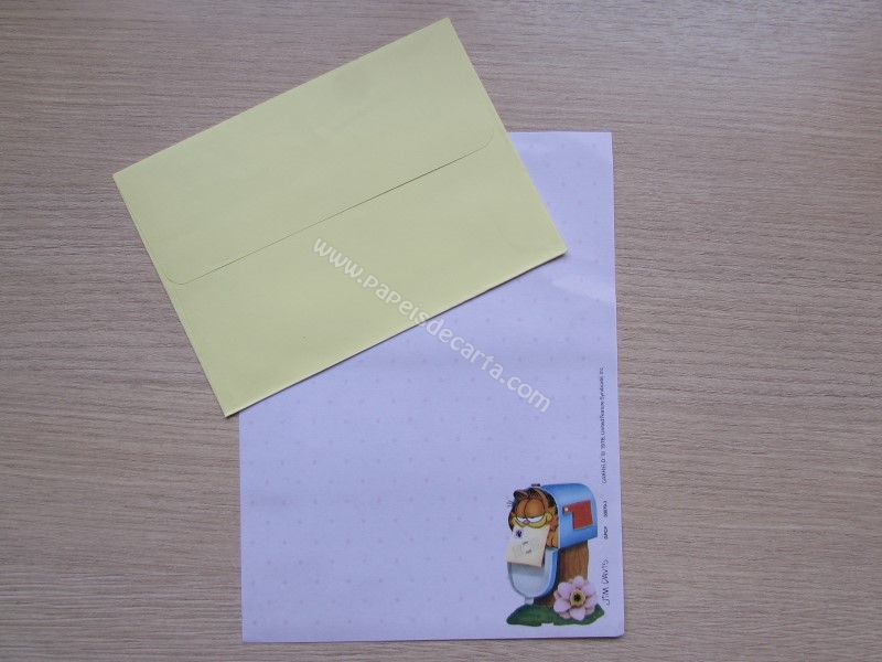Papel de carta antigo, tamanho médio, com 1 folha e 1 envelope da coleção Garfield.