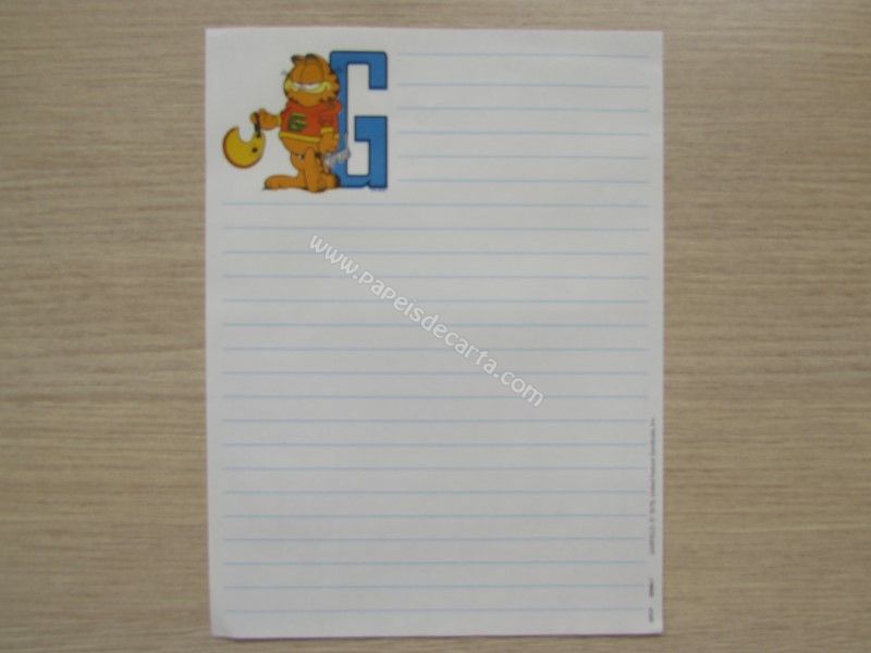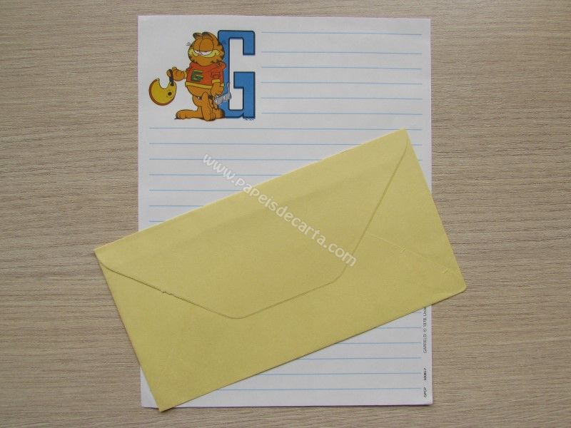 Papel de carta antigo, tamanho médio, com 1 folha e 1 envelope da coleção Garfield.