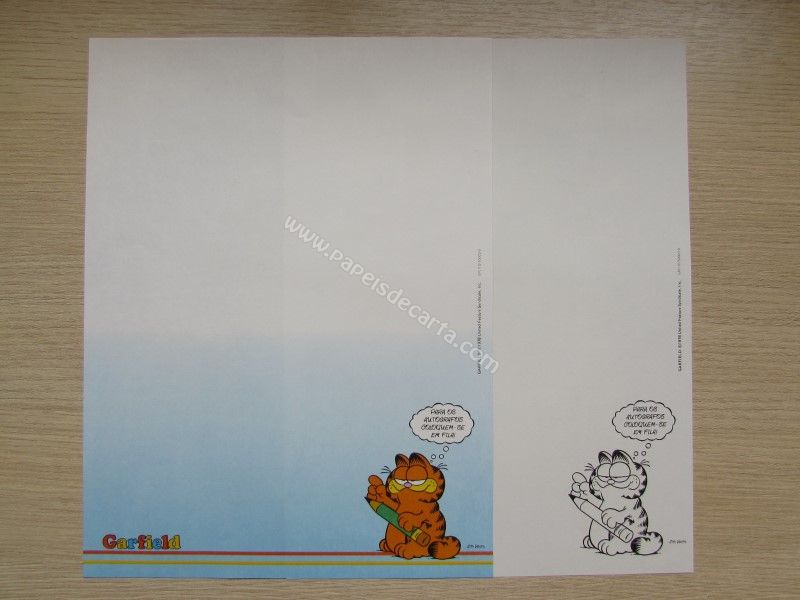 Papel de carta antigo, tamanho grande, com 2 folhas diferentes da coleção Garfield.