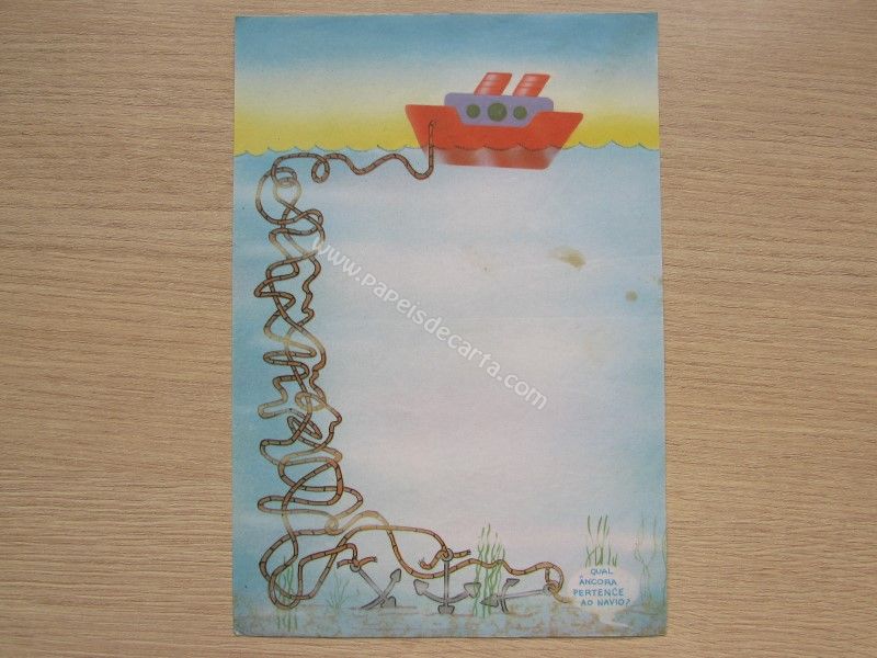 Papel de carta antigo, raro, tamanho médio, de coleção não identificada, para atividades. *O papel está com uma mancha. Ver foto.*
