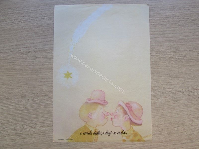 Papel de carta antigo, tamanho médio, da coleção Salesiana - Bem-querer. Frase: A estrela desliza, o desejo se realiza..