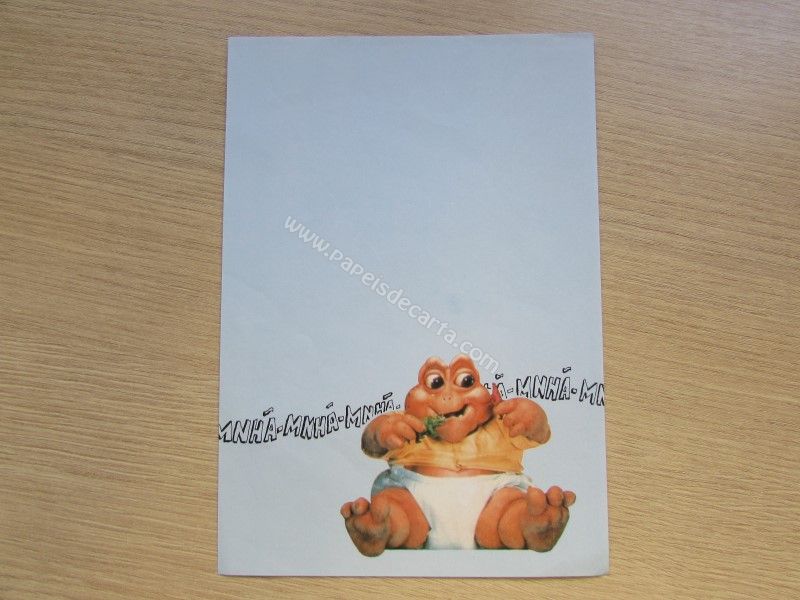 Papel de carta antigo, tamanho médio, da coleção Família Dinossauro, sem numeração.