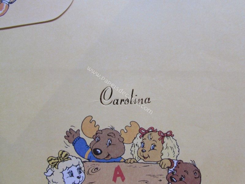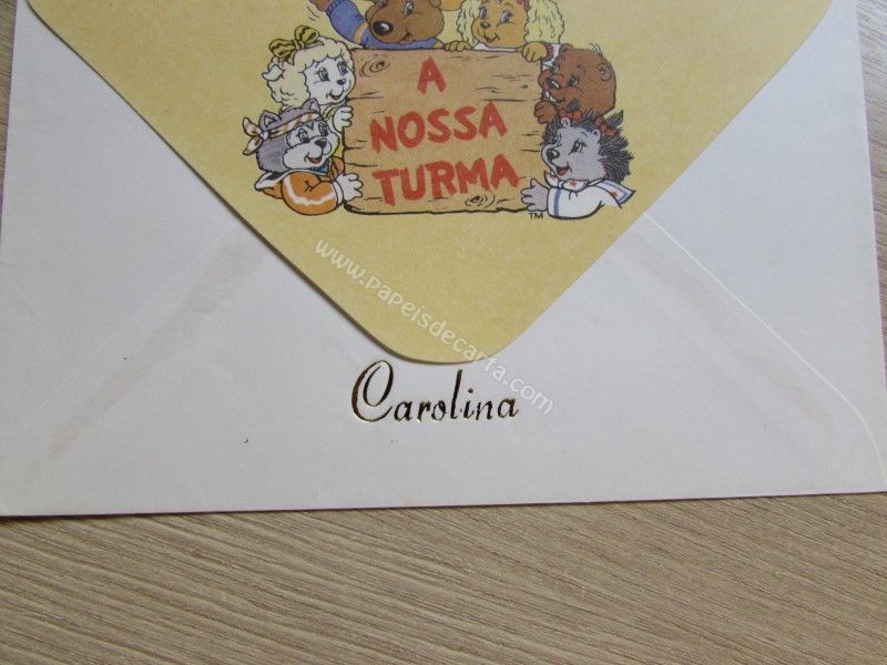 Papel de carta antigo, tamanho médio, da coleção A nossa turma. ** O PAPEL E O ENVELOPE POSSUEM O NOME CAROLINA GRAVADO. VER FOTOS.*
