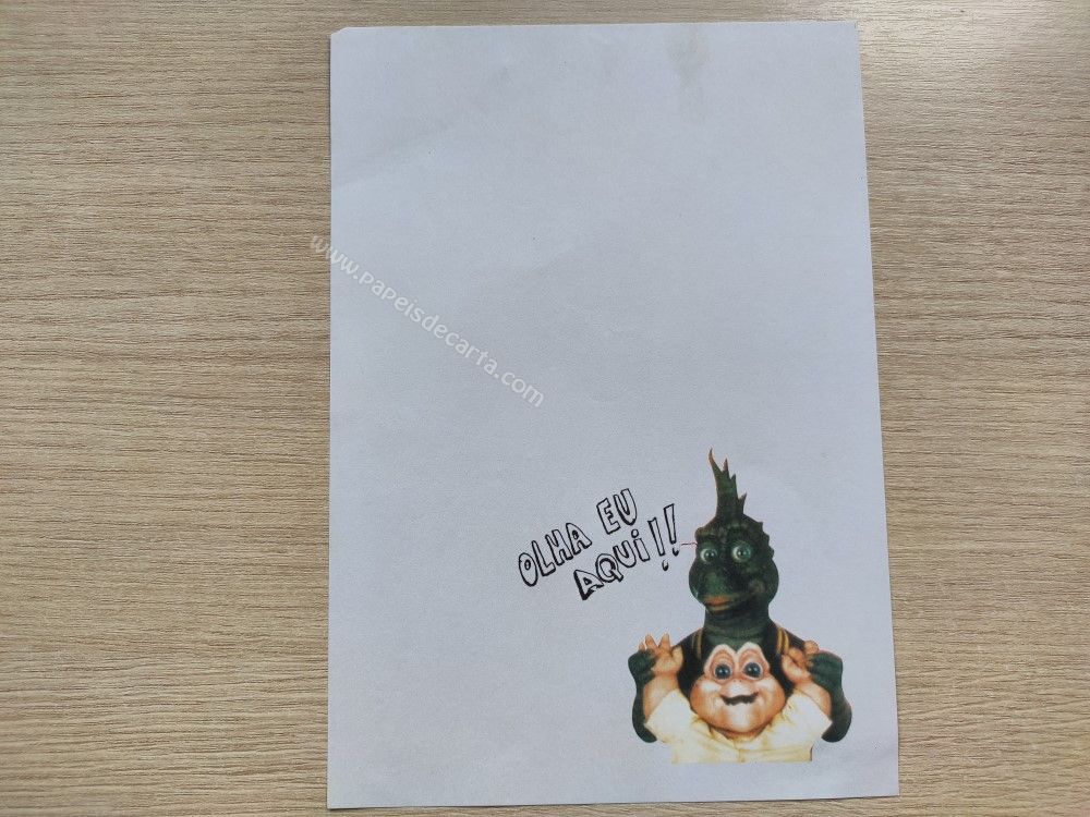 Papel de carta antigo, tamanho médio, da coleção Família Dinossauro, sem numeração.