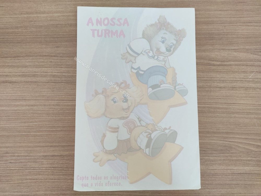 Papel de carta antigo, tamanho um pouco maior que o médio, da coleção A nossa turma. Tamanho: 24cm X 16cm. ** O PAPEL ESTÁ COM UMA DOBRINHA PEQUENA NA PARTE DE BAIXO.**
