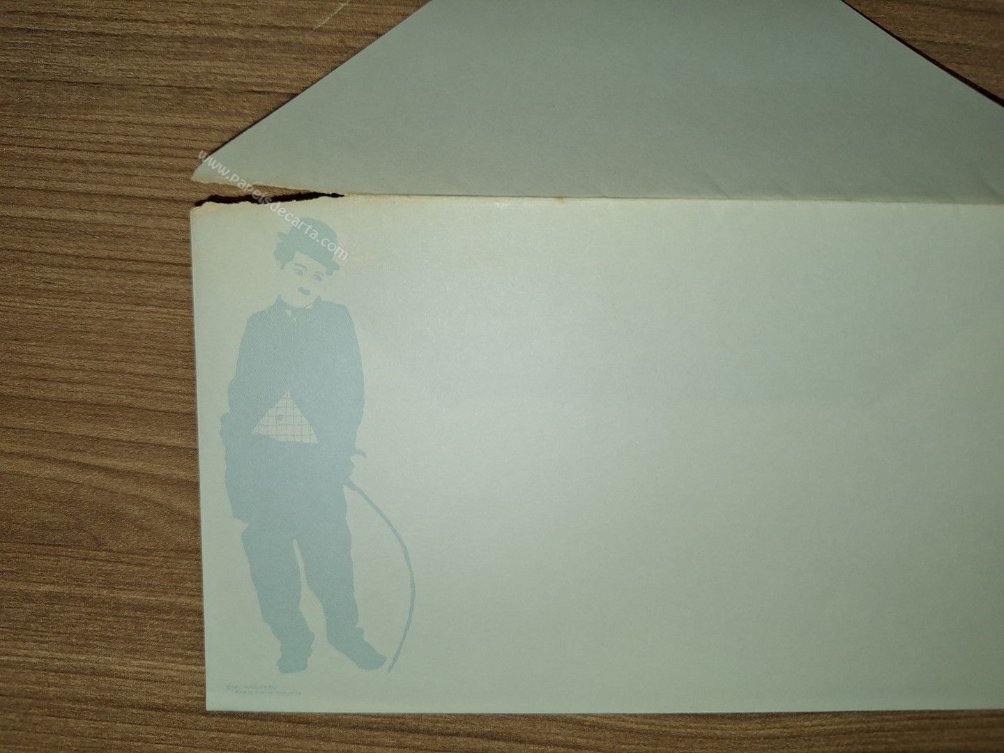 Papel de carta antigo, tamanho médio, da coleção Charles Chaplim. ** O ENVELOPE POSSUI UM RASGO. VER FOTO.**