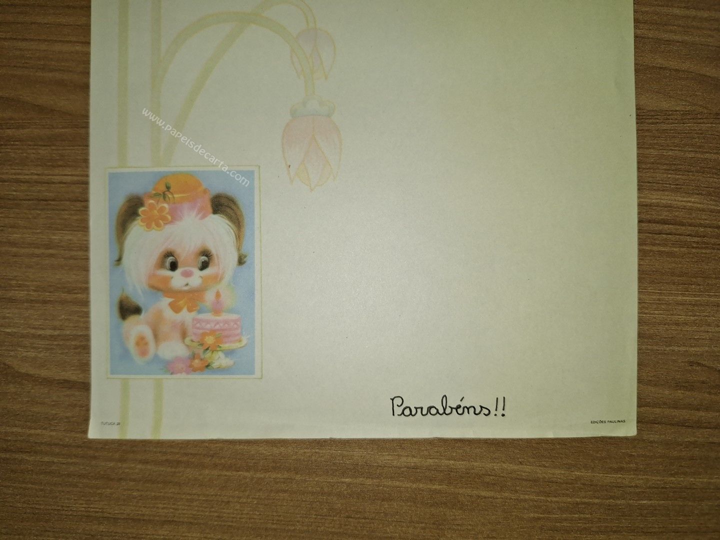 Papel de carta antigo, tamanho médio, da coleção Edições Paulinas - Tutuca - 28. ** O PAPEL ESTÁ COM MARCA DE DOBRA NA PARTE DE BEIXO. VER FOTO.**