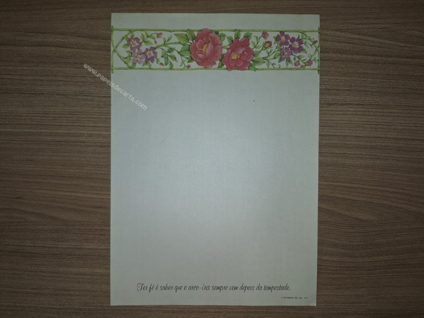 Papel de carta antigo, tamanho médio, da coleção Notebrás. Possui a numeração 607.