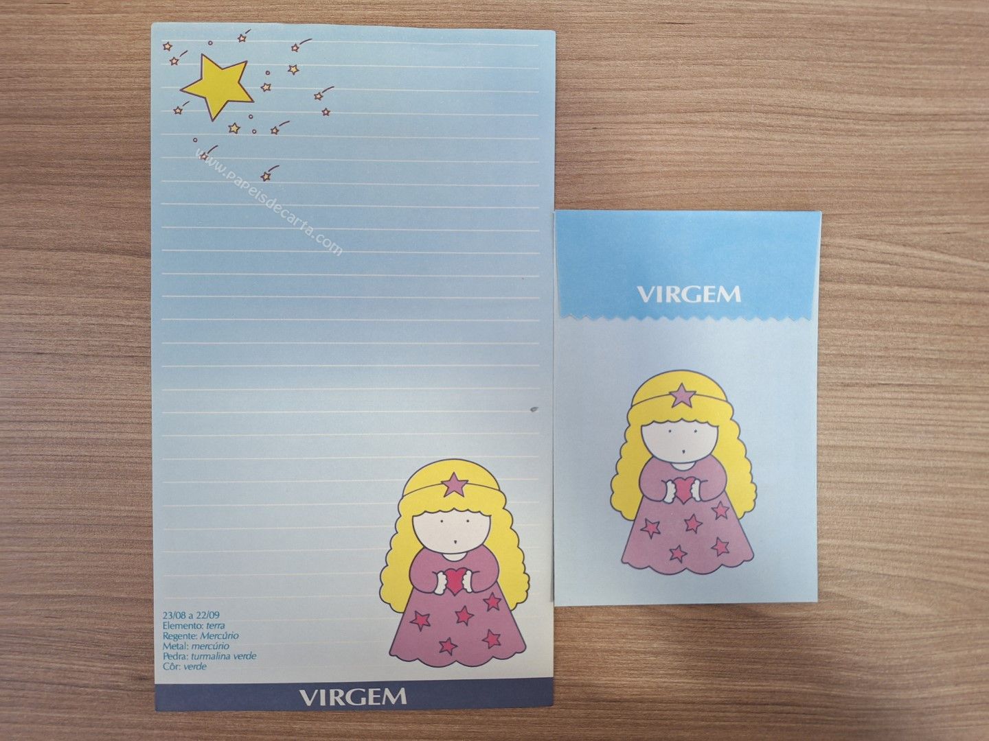 Papel de carta antigo, raro, tamanho médio, com 1 folha e 1 envelope da coleção Signos - Virgem