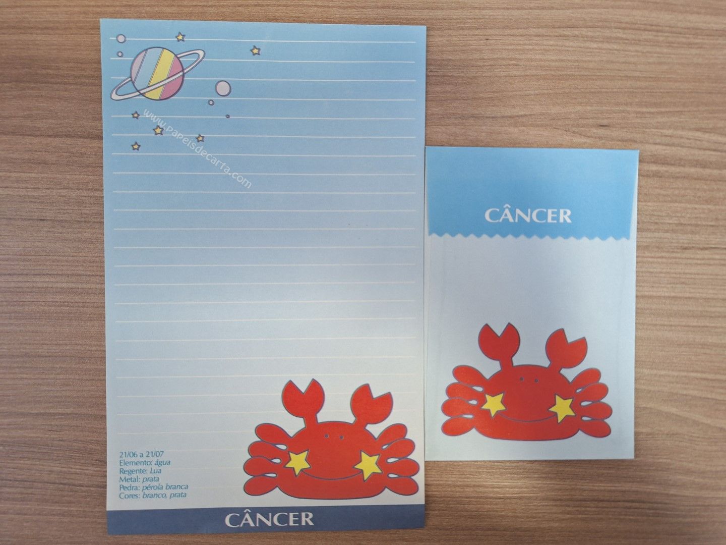 Papel de carta antigo, raro, tamanho médio, com 1 folha e 1 envelope da coleção Signos - Câncer