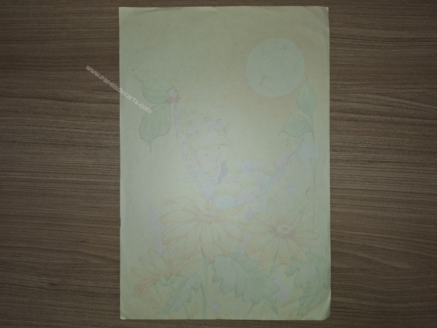 Papel de carta antigo, tamanho em pouco maior que o médio, da coleção Fadinha Encantada. 25cm x 16,5cm. ** POSSUI MANCHINHAS DO TEMPO. VER FOTO. **