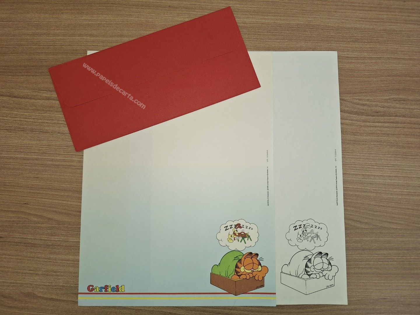 Papel de carta do Grafield. Tamanho grande. ** O PAPEL POSSUI A MARCA DO ENVELOPE, QUE FOI GUARDADO JUNTO. VER FOTO. **