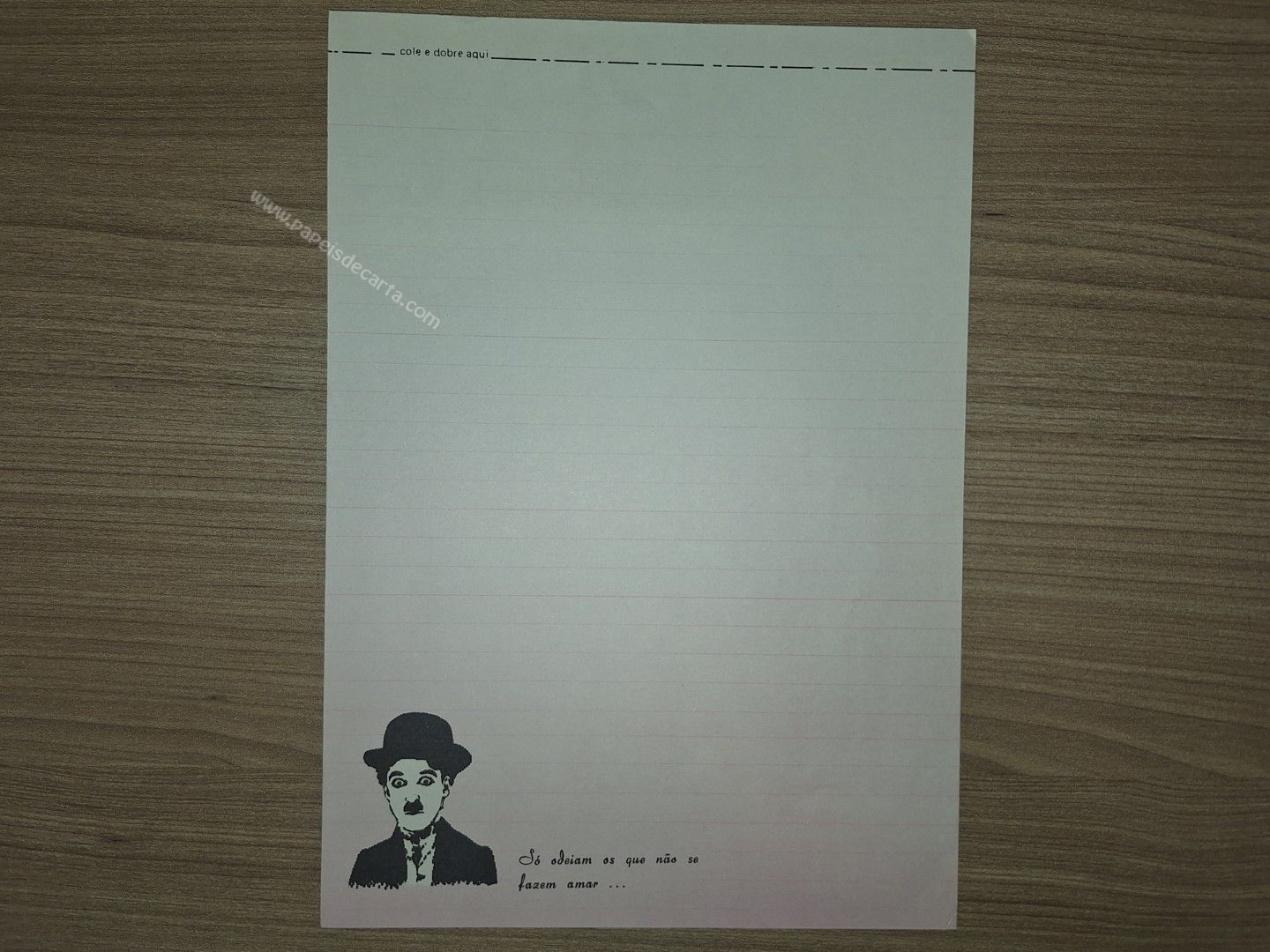 Papel de carta antigo, tamanho médio, da coleção Charles Chaplim.