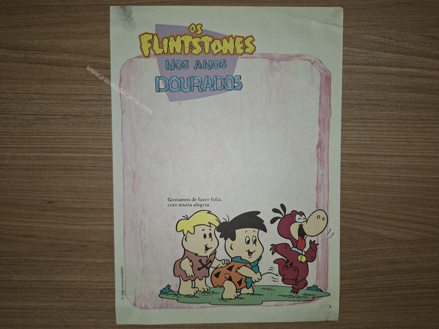 Papel de carta da coleção Os Flintstones nos anos dourados, tamanho médio. ** O PAPEL FOI COLADO NAS PONTAS EM FOLHA SULFITE E NA HORA DE TIRAR, O PAPEL NA PARTE DE TRÁS FICOU MAIS FININHO. OBSERVAR FOTO. **