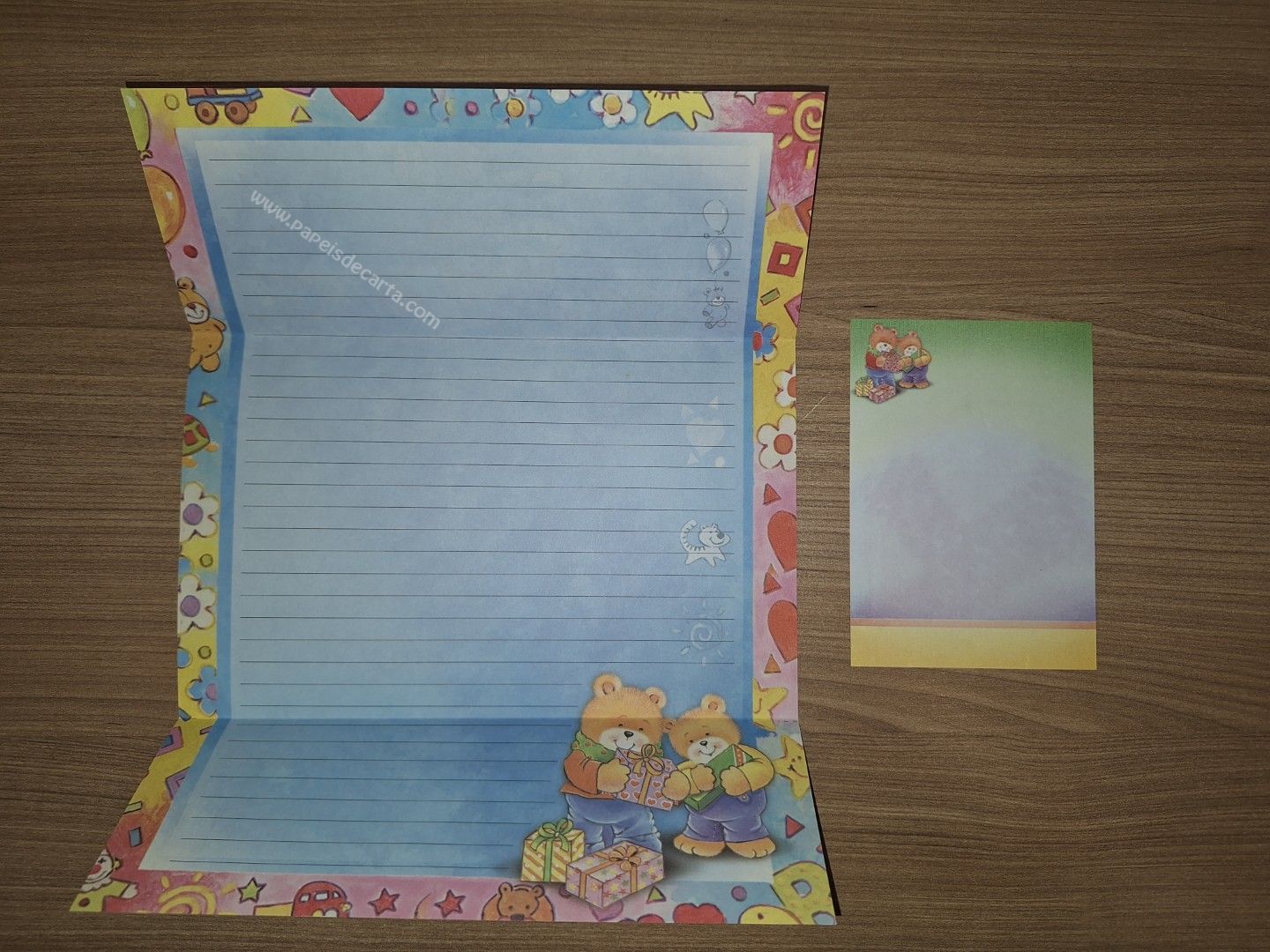 Papel de carta da coleção Stephanni Graf, sendo 1 folha que vira envelope e 1 notinha.