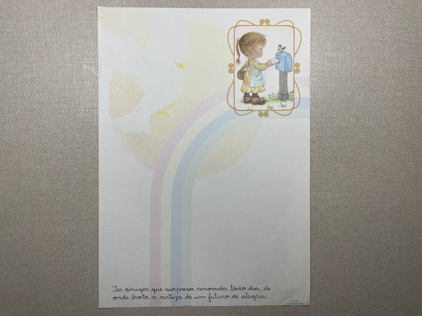 Papel de carta antigo, tamanho médio, da coleção Edições Paulinas - Arco Íris, não possui numeração.