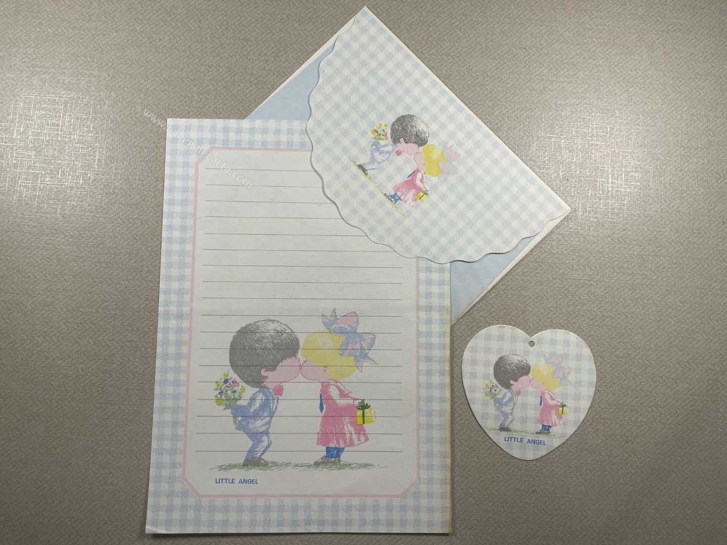 Conjunto de papel de carta antigo da coleção Little Angel, tamanho médio, com 1 folha, 1 envelope e 1 memo. ** A LATERAL DO PAPEL ESTÁ AMARELADINHA. VER FOTO. **