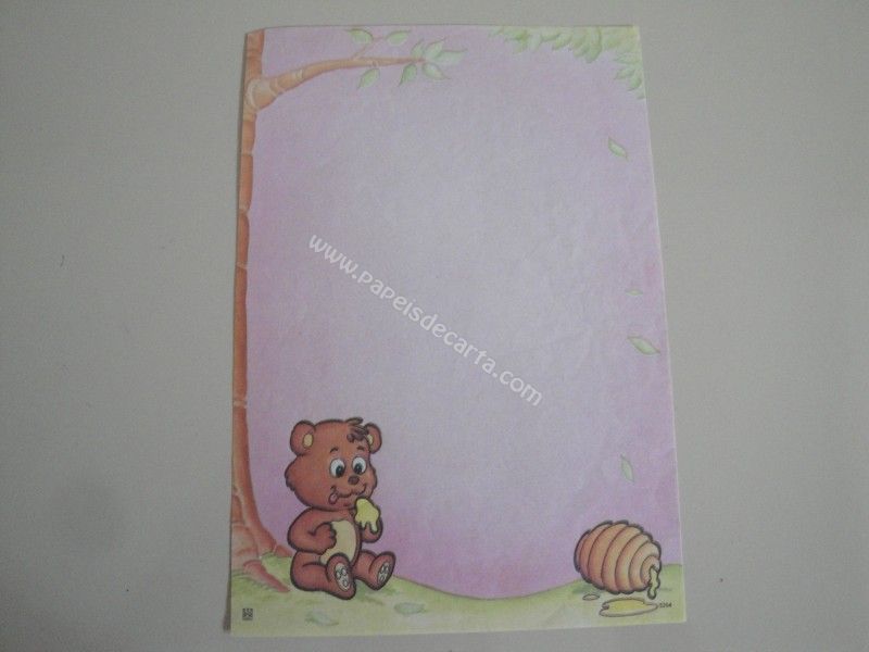 Papel de carta antigo, raro, tamanho médio, da coleção CBEC - 5164. Um ursinho comendo mel.