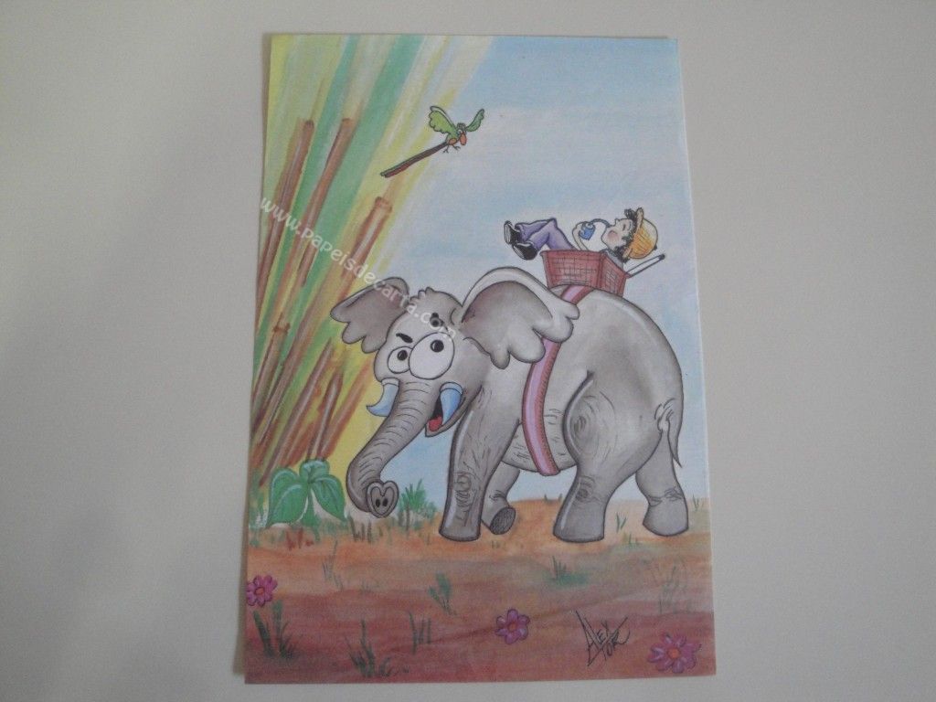 Papel de carta antigo, tamanho médio, da coleção Alex Tor, sem número. Um homem sendo levado por um elefante.