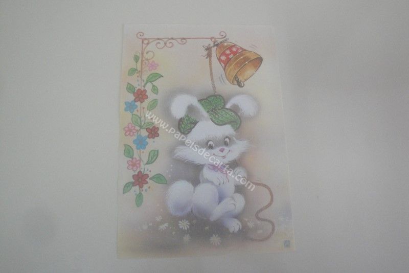Papel de carta antigo, raro, tamanho médio, da coleção CBEC - sem número, com um coelhinho badalando um sino.
