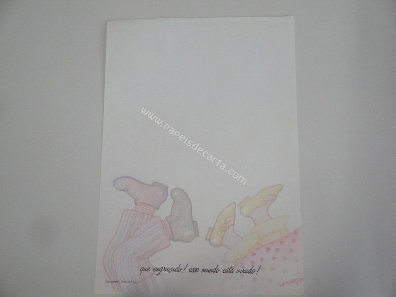 Papel de carta antigo, tamanho médio, da coleção Salesiana - Bem-querer. Frase: Que engraçado! Este mundo está virado!