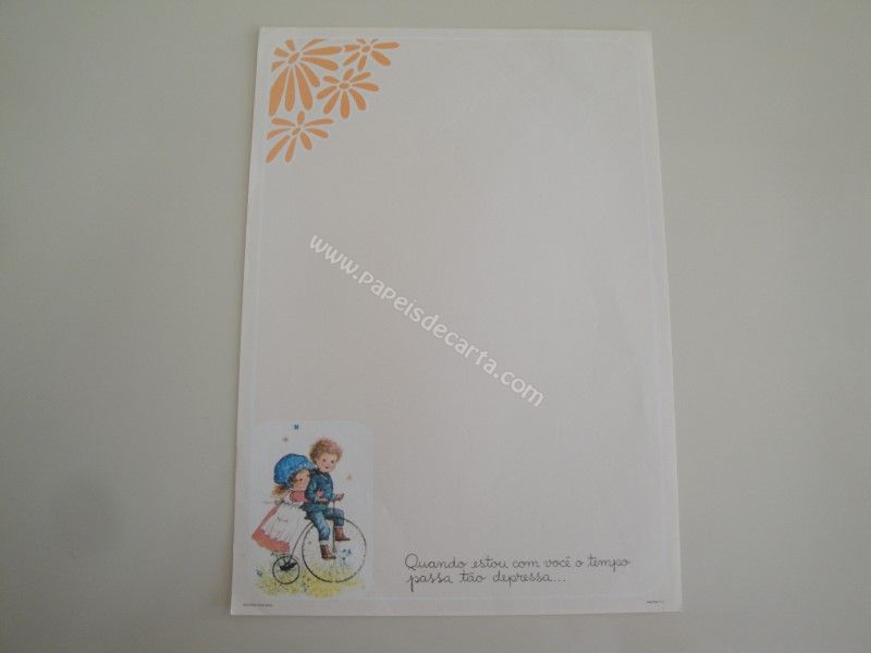 Papel de carta antigo, tamanho médio, da coleção Edições Paulinas - July Pop - A-3. Frase: Quando estou com você o tempo passa tão depressa...