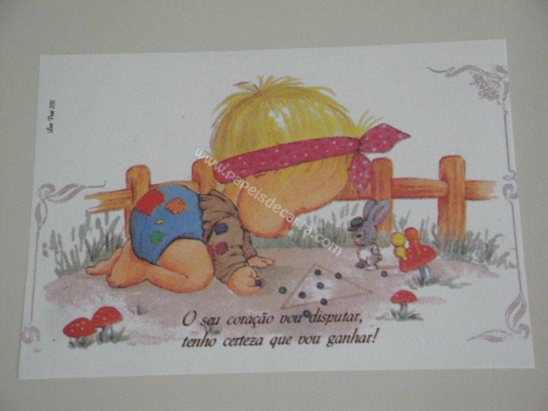 Papel de carta antigo, tamanho médio, da coleção Love Print, número 208. Possui a frase: O seu coração vou disputar, tenho certeza que vou ganhar!