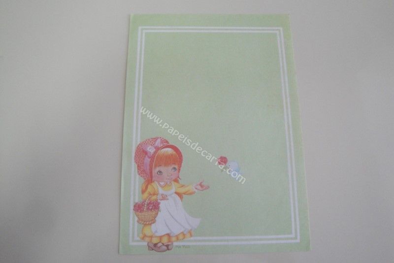 Papel de carta antigo, raro, tamanho médio, da coleção Matuzi - sem número. Ilustração: Um passarinho levando uma rosa para uma florista. Tamanho: 15,5 x 22 cm