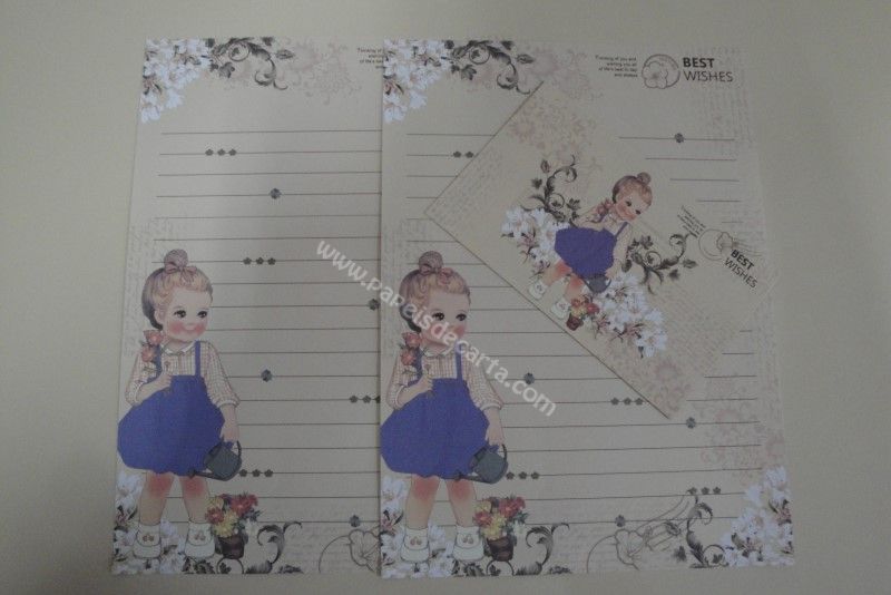 Conjunto de papel de carta grande importado, sendo 2 folhas e 1 envelope.