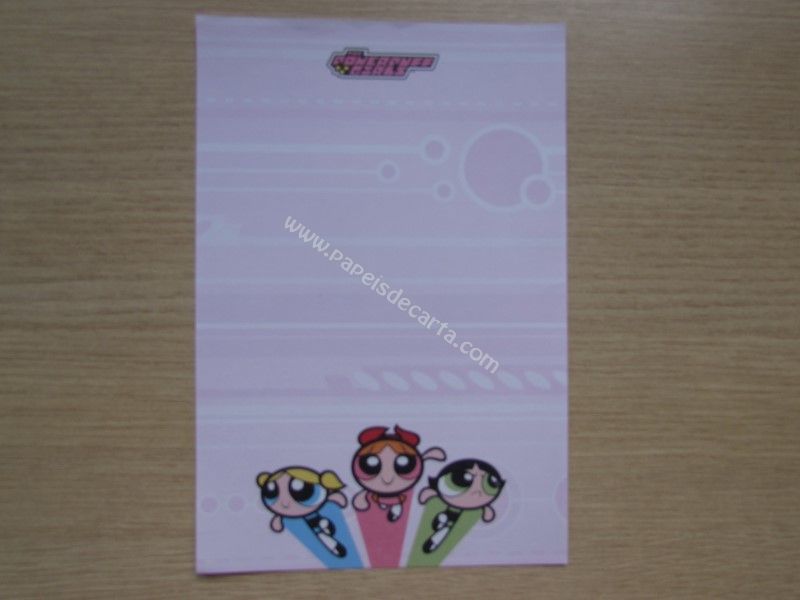 Papel de carta antigo, tamanho médio, da coleção The Powerpuff Girls. Coleção Village.