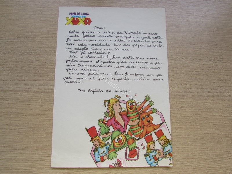 Papel de carta antigo, raro, tamanho médio, da coleção Xuxa, sem numeração.