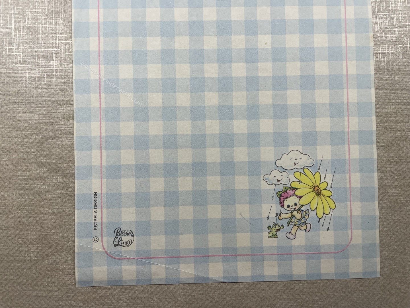 Papel de carta antigo, raro, tamanho médio, da coleção Palácios Line - Baby Flor - Azul. ** O PAPEL ESTÁ COM MARCA DE DOBRA NA PARTE DE BAIXO. VER FOTO. **
