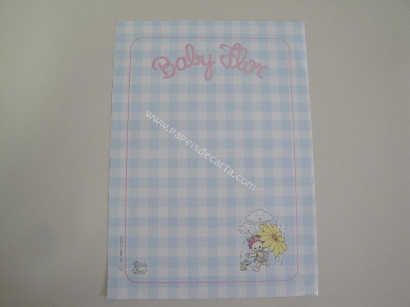Papel de carta antigo, raro, tamanho médio, da coleção Palácios Line - Baby Flor - Azul.