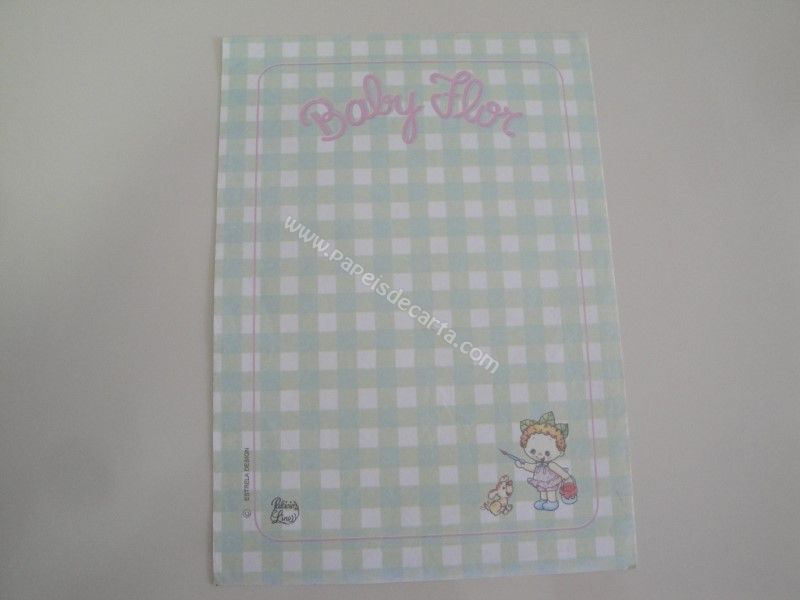 Papel de carta antigo, raro, tamanho médio, da coleção Palácios Line - Baby Flor - Verde.