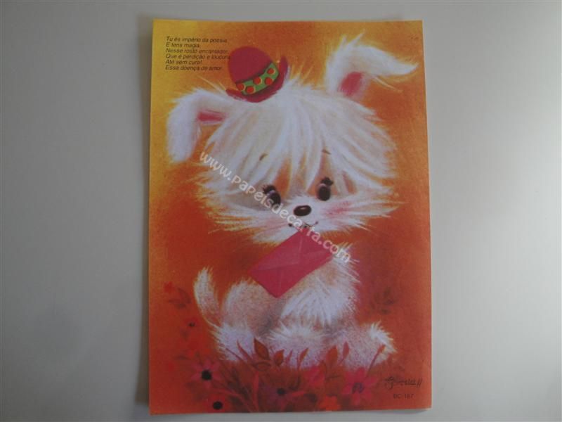 Papel de carta antigo, raro, tamanho médio, Sorria nº BC-167. Frase: Tu és império da poesia, E tens magia, Nesse rosto encantador, Que é perdição e loucura, Até sem cura!... Essa doença de amor.
