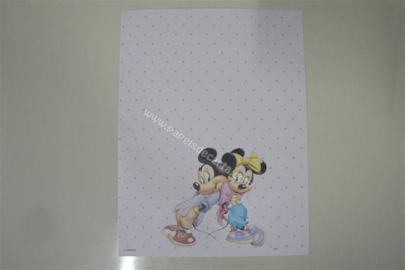 Papel de carta antigo, raro, tamanho médio, Disney, com o Mickey e a Minnie encostados um no outro.