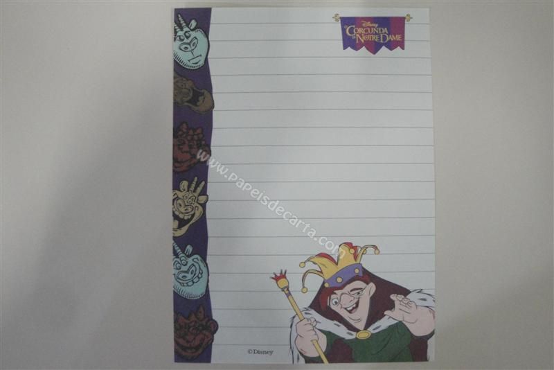 Papel de carta antigo, raro, tamanho médio, Disney, com o Corcunda de Notre Dame vestido de rei.