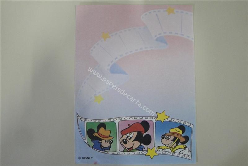 Papel de carta antigo, raro, tamanho médio, Disney, com três fotos do Mickey em um filme.