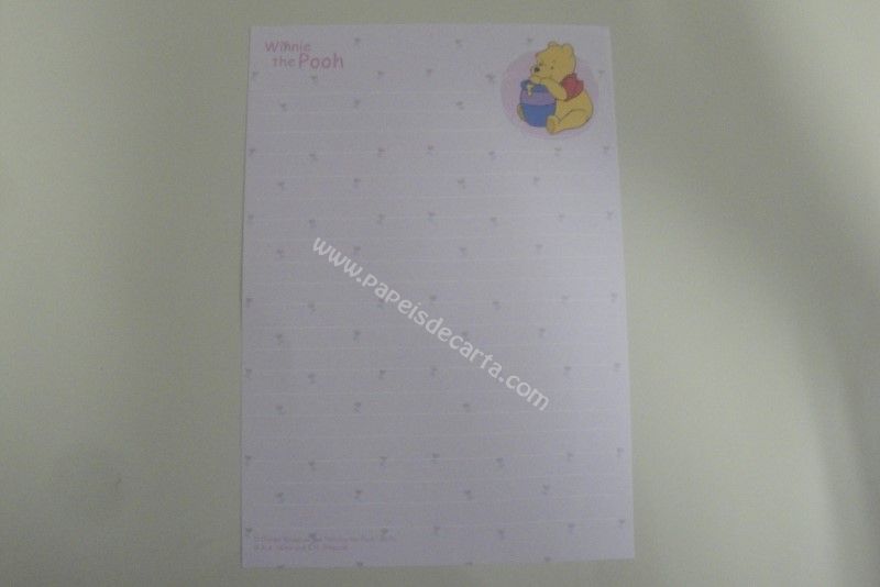 Papel de carta antigo, raro, tamanho médio, da Disney, com o Ursinho Pooh se deliciando com um pote de mel.