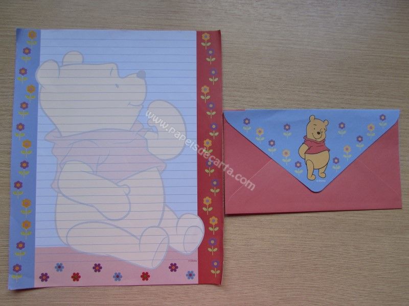 Papel de carta antigo, raro, tamanho médio (maior que o médio, menor que o grande), da Disney, Pooh.