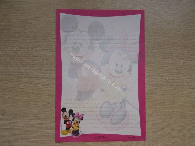 Papel de carta antigo, raro, tamanho um pouco maior que o médio, da Disney, Mickey e Minnie.