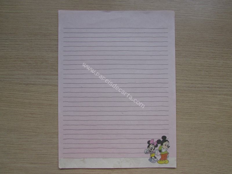 Papel de carta antigo, raro, tamanho um pouco maior que o médio, da Disney, Mickey e Minnie.