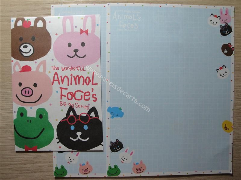 Conjunto importado, de papel de carta com 2 folhas iguais e 1 envelope do Animal Faces.