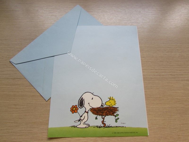 Papel de carta com 1 folha e 1 envelope antigo do Snoopy, tamanho médio.