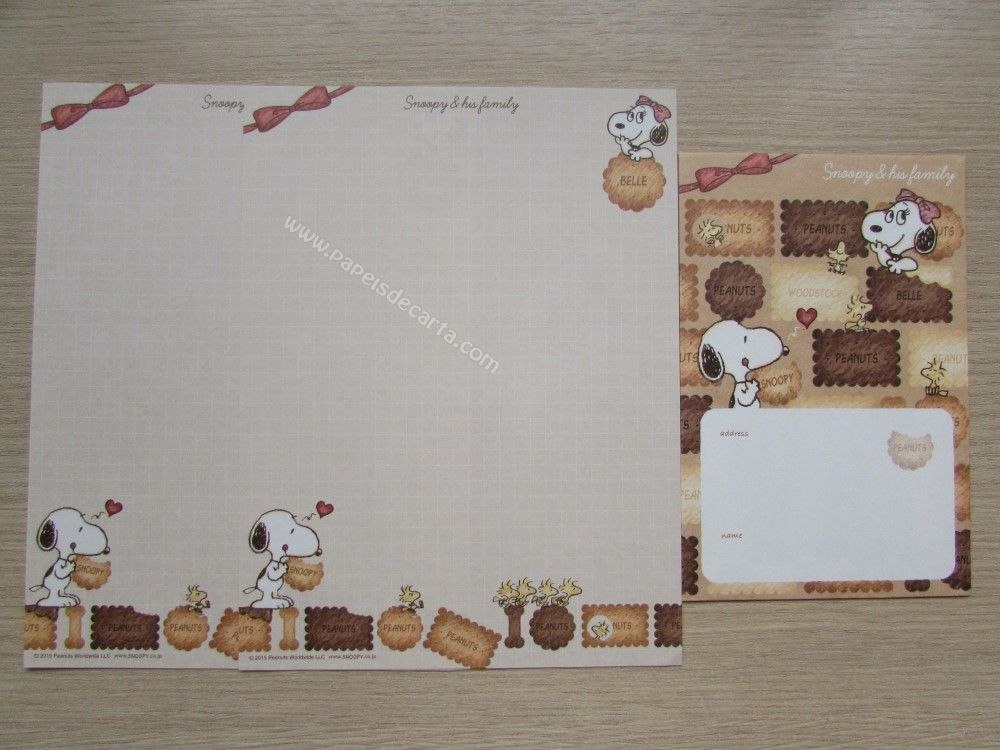 Conjunto com 2 folhas e 1 envelope do Snoopy 150