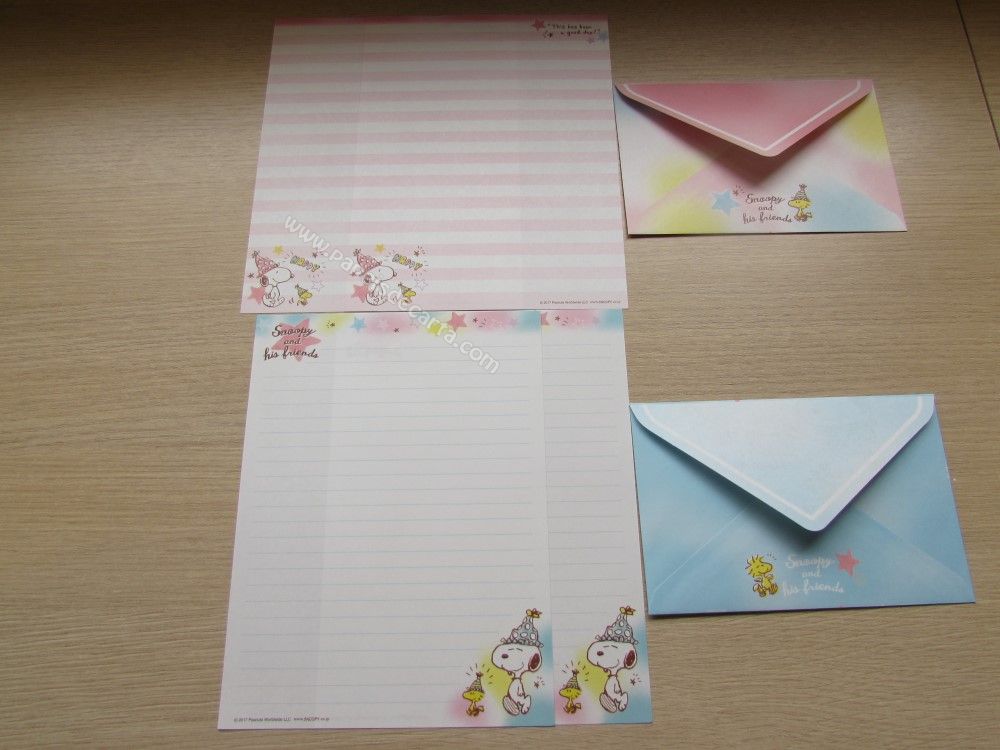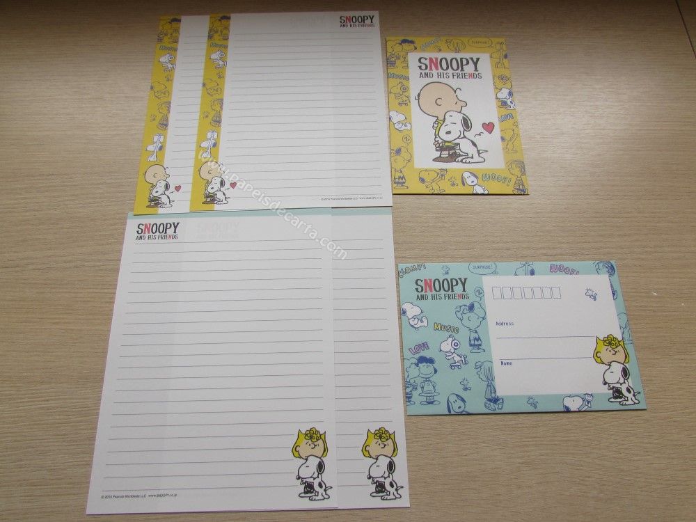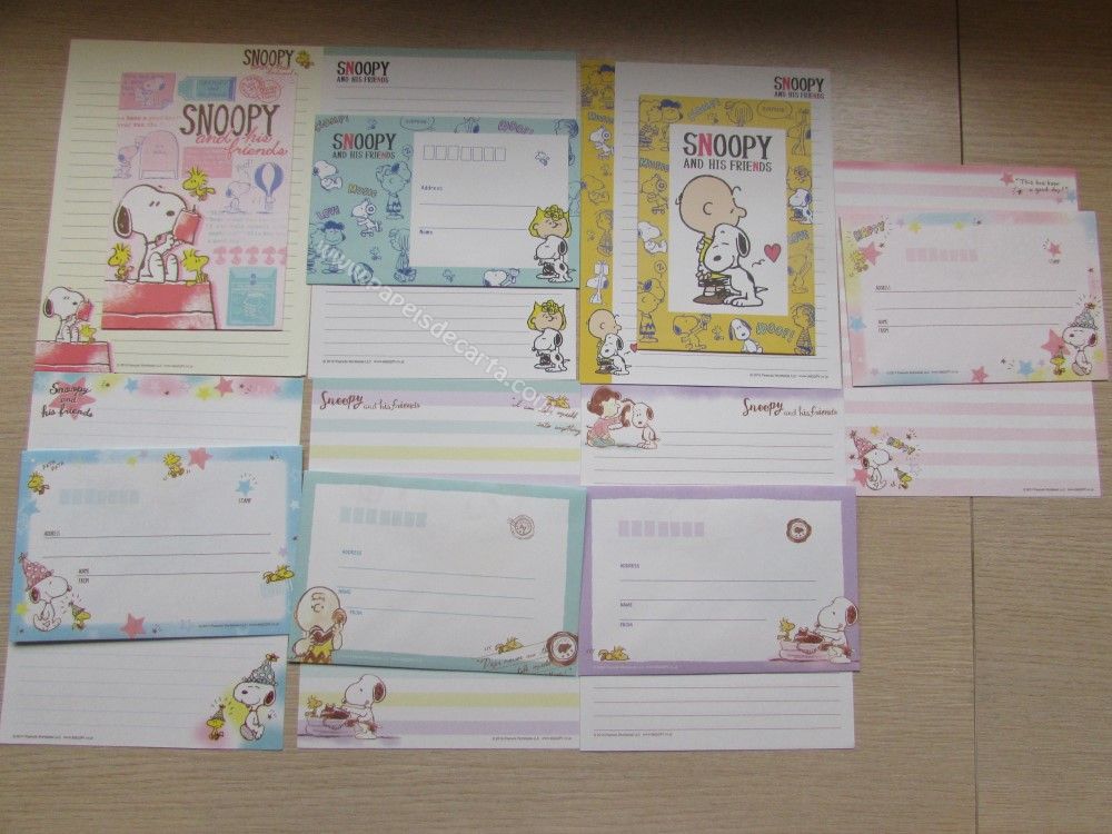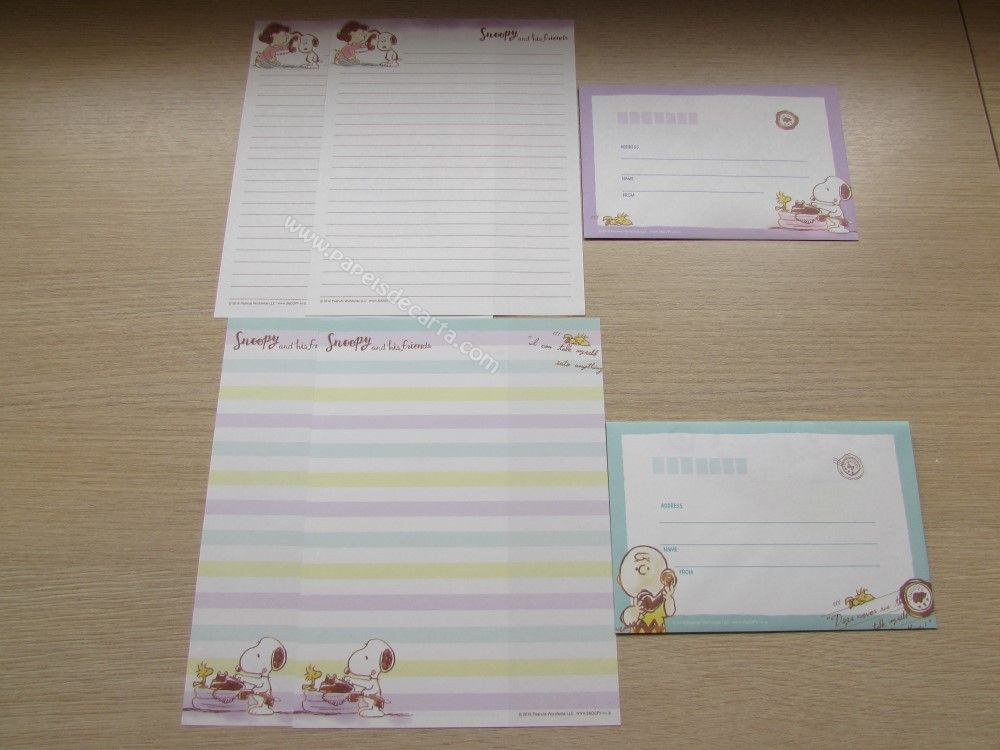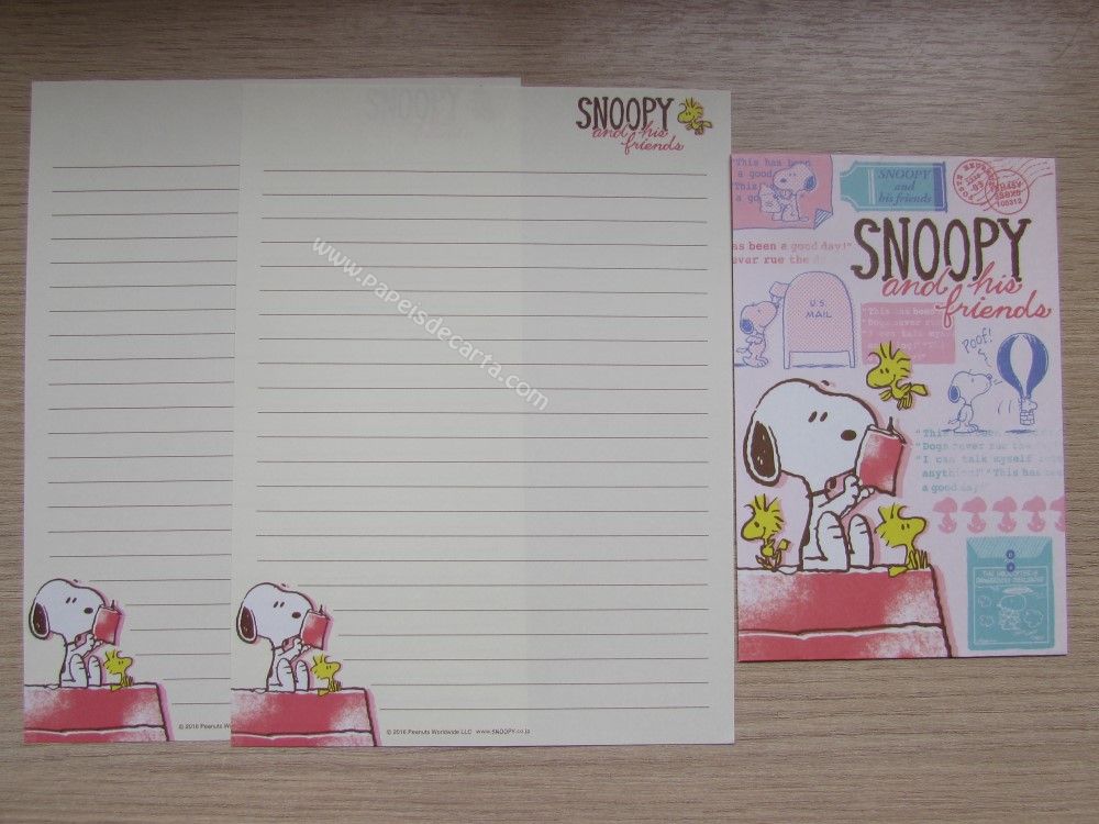 Lote importado, de papel de carta com 07 conjuntos, sendo 2 folhas e 1 envelope cada conjunto, do Snoopy. Tamanho médio.