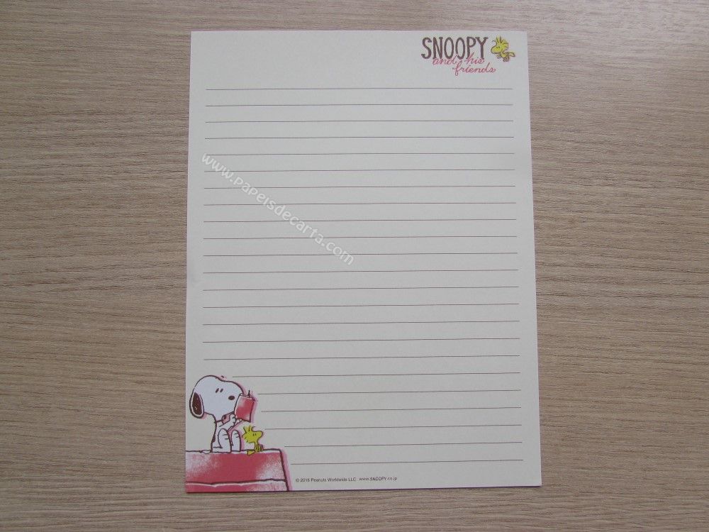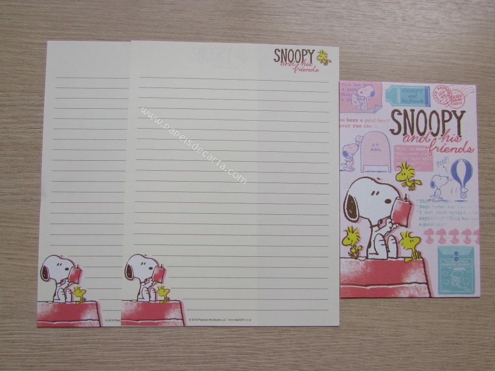 Conjunto importado, de papel de carta do Snoopy, com 2 folhas iguais e 1 envelope.