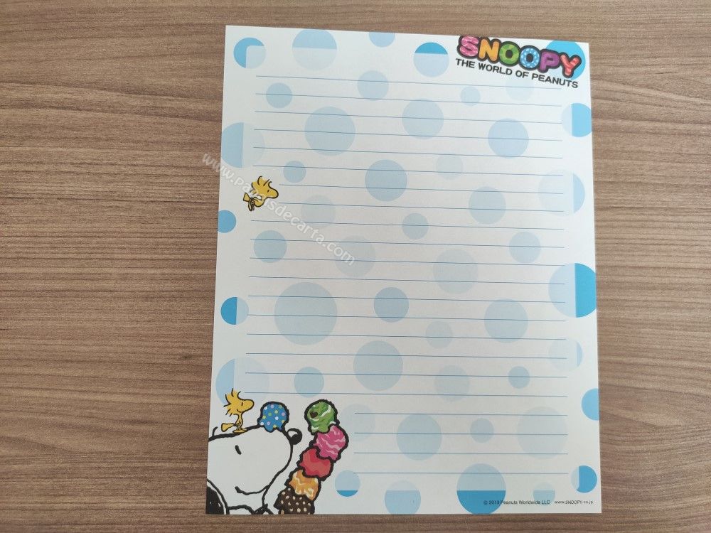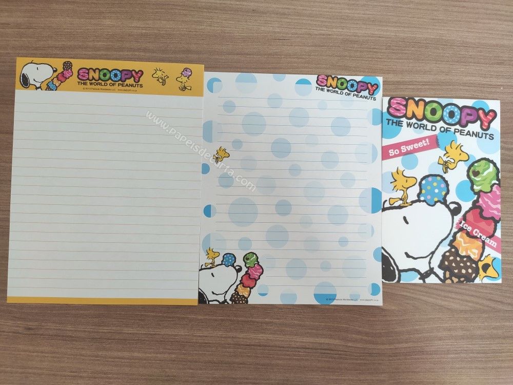 Conjunto importado, de papel de carta do Snoopy, com 2 folhas e 1 envelope.